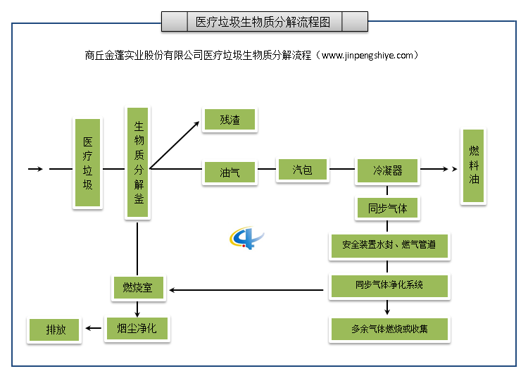 为确保医疗垃圾得到及时、高效、无害化处置,防止疾病传播扩散,经过多年的科技攻关,本公司设计推出了医疗垃圾经过高温消毒杀菌后处理后生物质分解燃料油的项目,可以把医疗垃圾彻底处理,既节省了运输、填埋的费用也可变废为宝,创造较高的经济效益。